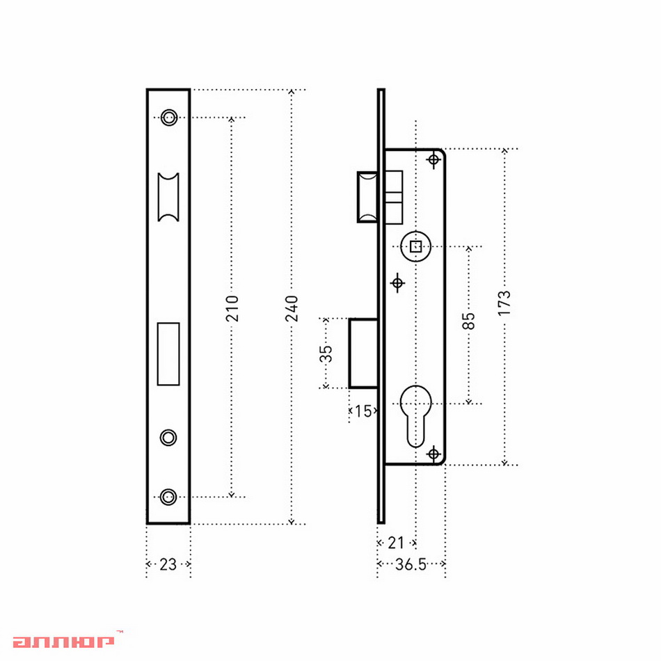 Замок врезной цилиндровый, без механизма. Предназначен для установки в узкопрофильные двери. Прямой ригель. Удаление ключевого отверстия 21мм. Межосевое расстояние 85мм. Цвет торцевой планки - хром, ширина 23мм.