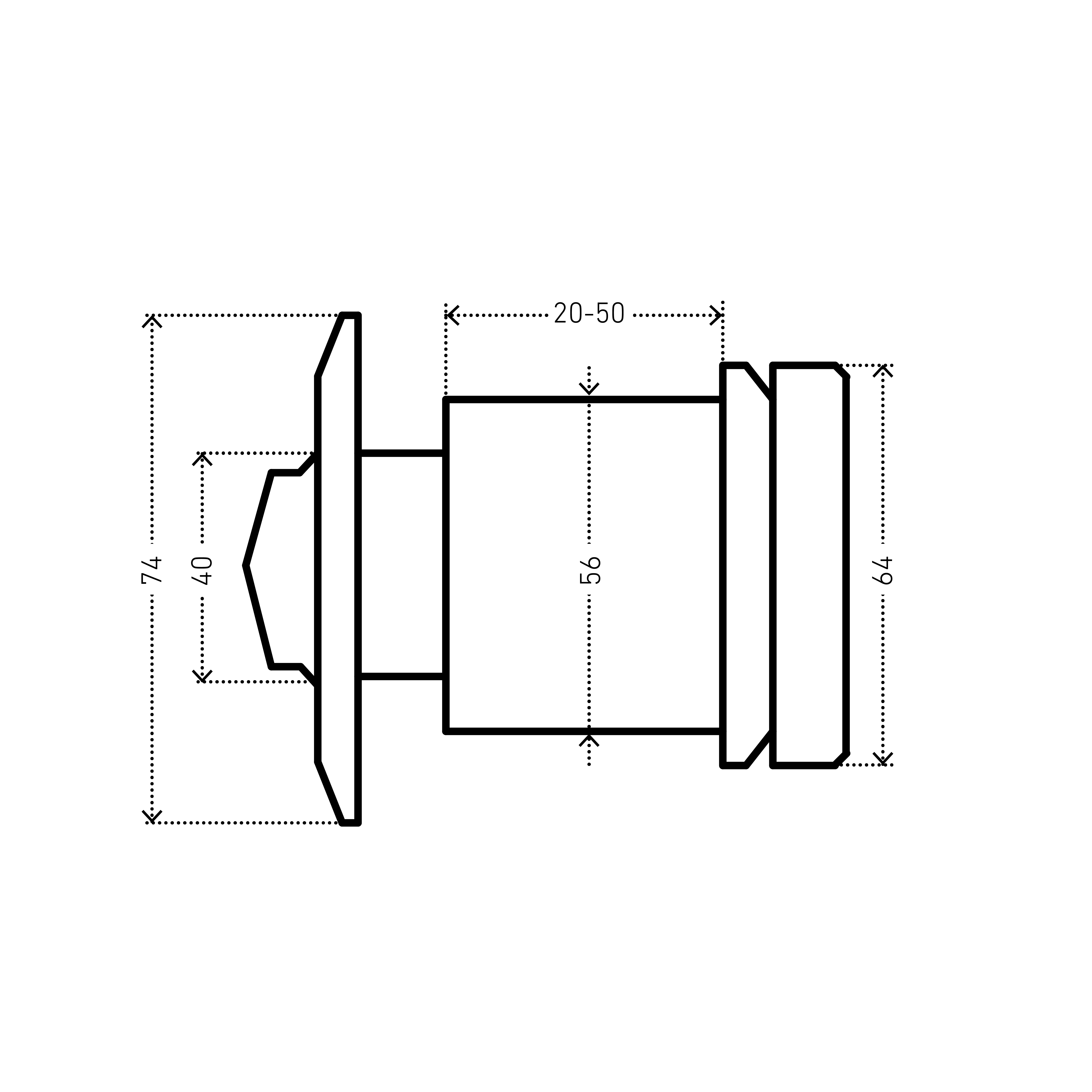 Глазок дверной для установки на металлические и деревянные входные двери толщиной 20-50 мм. Внешний диаметр корпуса глазка 56 мм. Угол обзора 160 градусов. Материал корпуса - пластик; высококачественная оптика. Позволяет наблюдать из помещения с расстояния 1,5-2 метра, не приближаясь к двери.