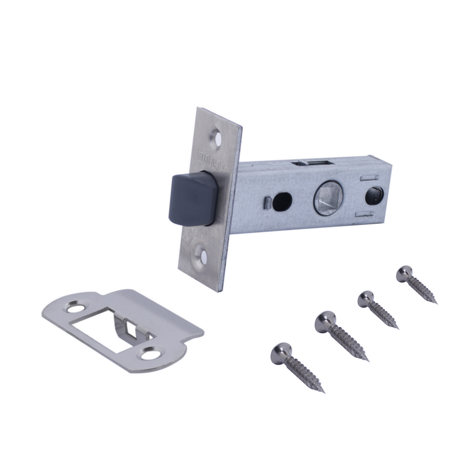 Универсальная защёлка врезная для установки на деревянные межкомнатные двери. Малошумный язычок защелки из ударопрочного пластика под цвет торцевой планки. Материал корпуса - сталь оцинкованная штампованная, гальваническое покрытие. Под ручку с квадратом 8 мм. Удаление ключевого отверстия - 45 мм. Ширина планки - 25мм. Габариты корпуса - 72.5х22х15 мм. В комплекте - защелка, ответная планка и белый пластиковый вкладыш к ней, саморезы.