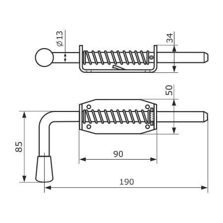 Домарт Засов пружинный (90) 190мм мод.2 d-13мм черный