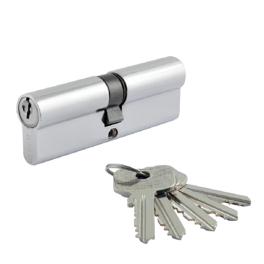 Цилиндровый механизм Нора-М, размер 90 мм, симметричный 45/45, английский ключ, материал: ЦАМ, комплектация: ключ-ключ, 5 ключей в комплекте, цвет хром