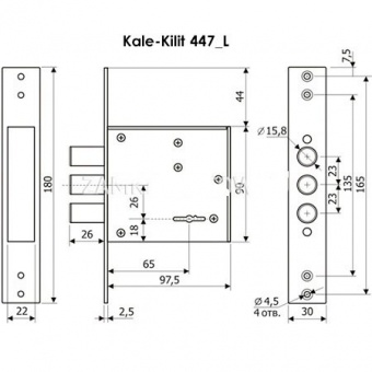 Kale 447/L Замок врезной сувальдный для металлических дверей, универсальный, дополнительный.
