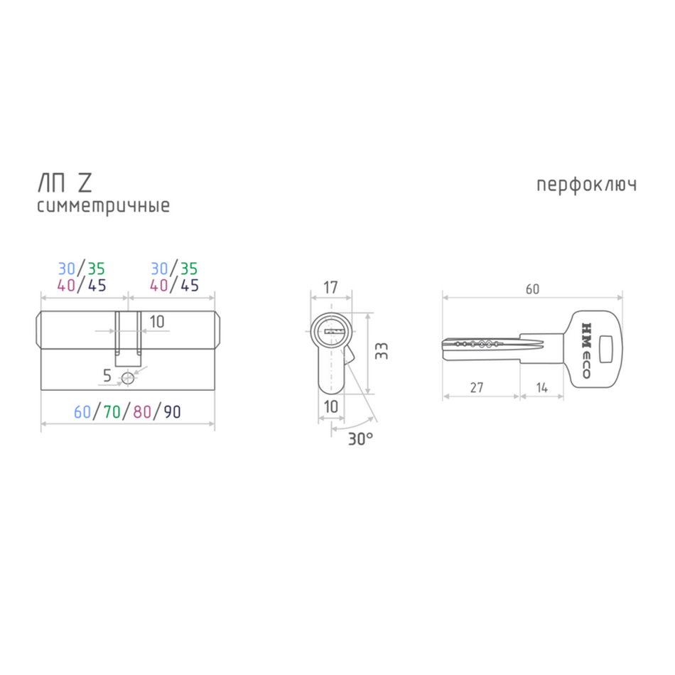 Новый цилиндр из бюджетной линейки ECO с перфорированным ключом. Сердечник и корпус механизма изготовлены из сплава ЦАМ. В комплекте пять перфорированных стальных ключей.