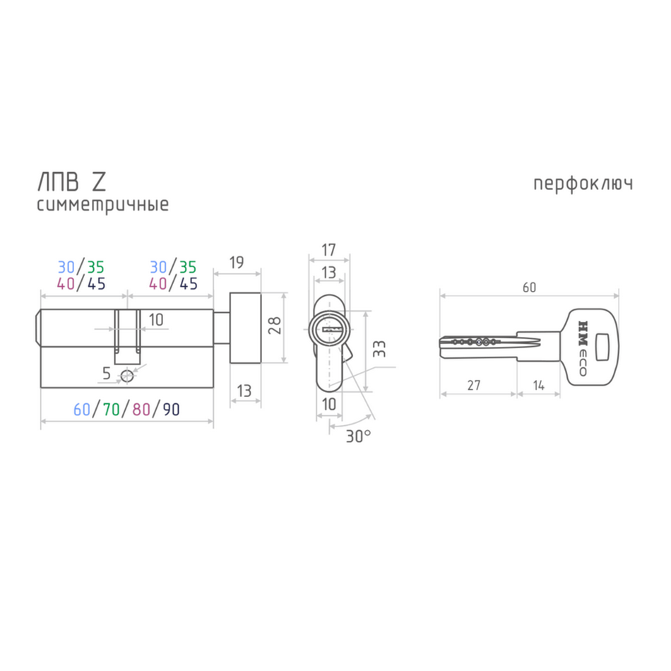 Цилиндр из сплава ЦАМ из бюджетной линейки ECO с перфорированным ключом в модификации ключ-вертушка. В комплекте пять перфорированных стальных ключей. Для удобства использования ключи имеют удлиненную дужку. Гарантия 1 год