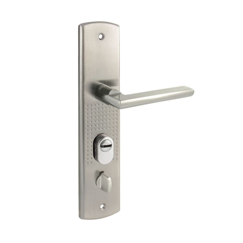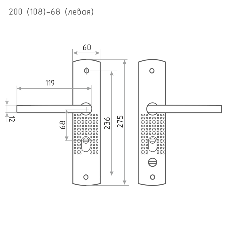 Комплект из двух ручек на планках предназначен для входных дверей китайского производства. Подходит для дверей, открывающихся налево. Модификация под евроцилиндр и фиксатор. Межосевое расстояние составляет 68 мм. Ручки из литого алюминия полноразмерные (длина 130 мм), эргономичной формы. Планки изготовлены из стали. В комплект поставки также входят накладки под цилиндр, квадрат и крепёж. Изделие выпускается в цвете «матовый никель», имеет гальваническое покрытие, которое защищает поверхность от негативных внешних воздействий. Гарантия на работу ручек на планке – 5 лет.