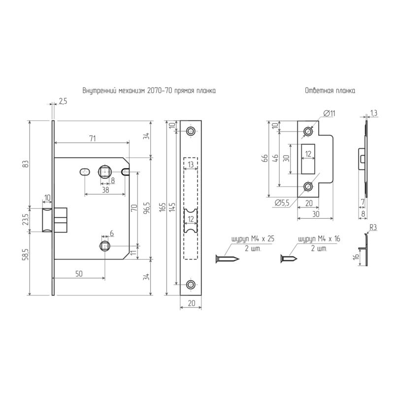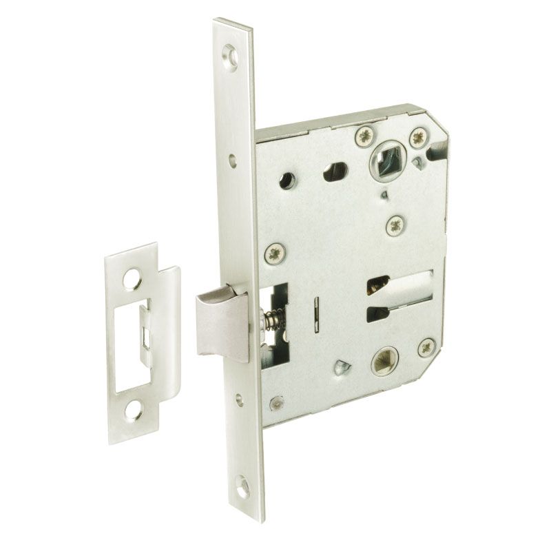 Предназначен для запирания дверей. Выпускается в двух модификациях – с прямоугольной и овальной ответной планкой, в моделях с межосевым расстоянием 47 мм и 70 мм. Данная модель также представлена с бесшумным ригелем.