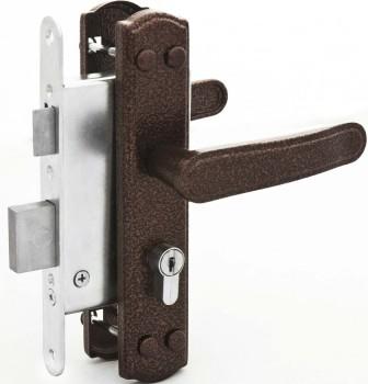 Ручки оснащены усиленными пружинами и стяжками, имеют 4 точки крепления. Комплектуется цилиндровым механизмом длиной 70 мм. По посадочным размерам совместим с замками белорусского производства.