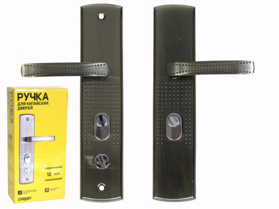 Ручки на планке под цилиндровый механизм. Предназначены для китайских металлических дверей, Подходят для левых и правых замков автоматического и не автоматического закрывания. Материал планки - сталь, толщиной 1мм, гальваническое покрытие. Межосевое расстояние - 68 мм, размеры планки - 60х275 мм, длина/высота ручки - 120/19 мм соответственно. Цвет ручек и планки - никель. В комплект входят две ручки, винтовые стяжки, пластиковые прокладки и квадратный штырь (8х8 мм) 110 мм, комплекты стержней для автоматических и не автоматических замков. Ручка подходит как для левых, так и для правых дверей.