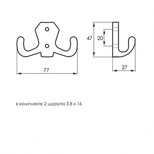 Крючок для одежды 2-х рожковый, цвет покрытия - бронза.