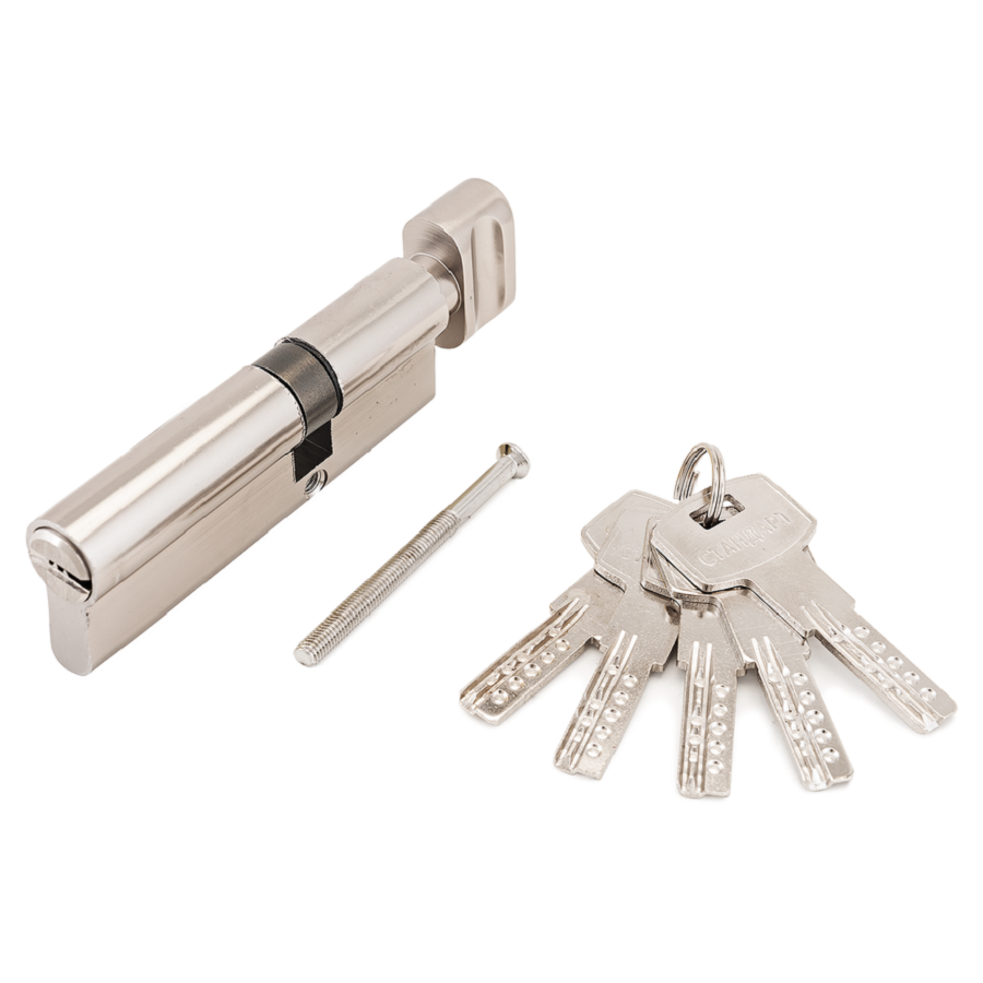 Механизм цилиндровый для врезных замков. Европрофиль. Перфорированный ключ с удлиненной шейкой ключа - 15мм. Секретность - около 6000 комбинаций. Материал корпуса – алюминий, ротора - латунь.Ключ-вертушка. Выступающий на 30 градусов из плоскости механизма кулачок защищает цилиндр от выбивания из двери. Подходит для китайских металлических дверей.