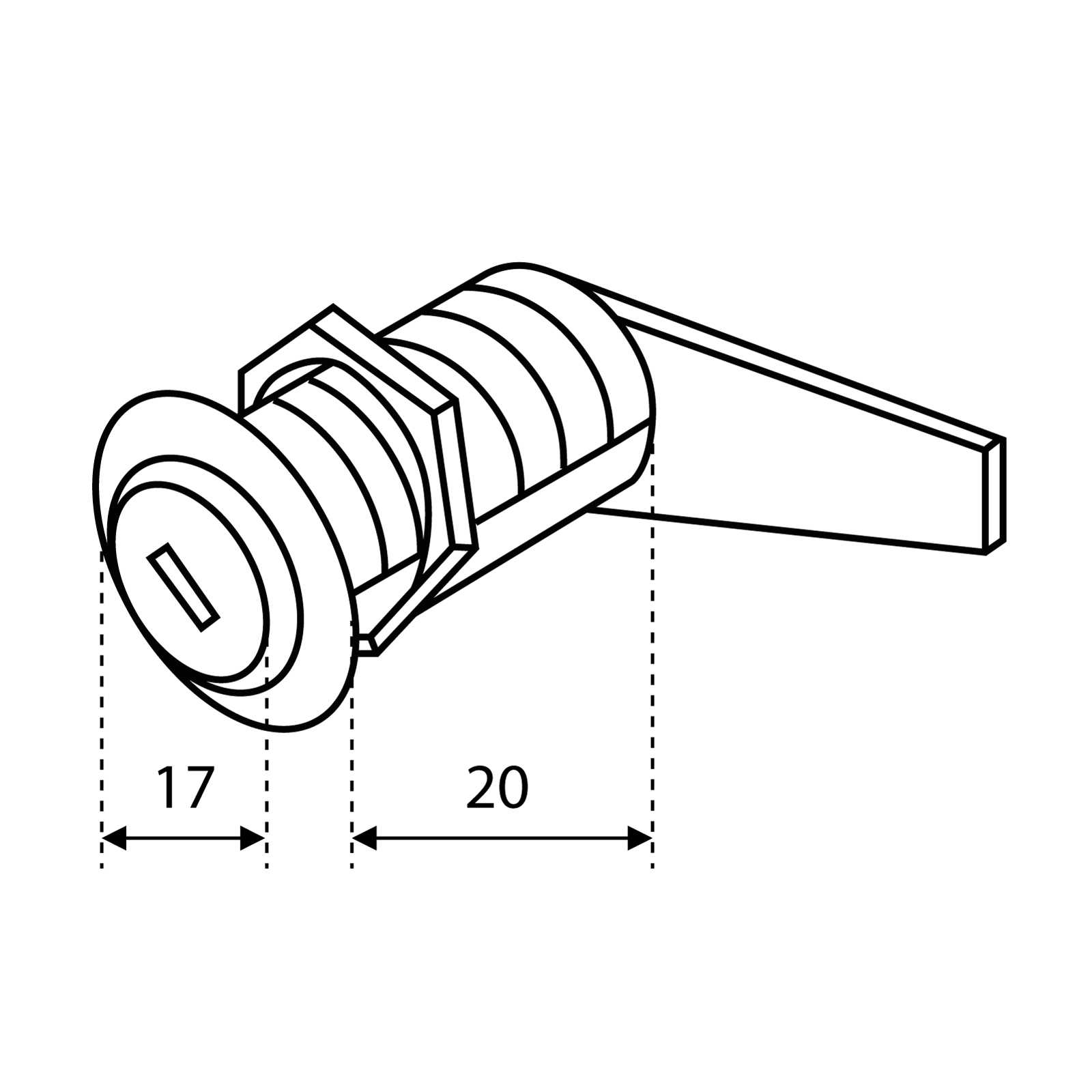 Замок врезной, почтовый. Секрет рамочный, ригель из листового проката имеет на конце крюк. Длина врезной части 20мм, диаметр 17мм. Комплектуется 2я стальными ключами. Удобен в установке, т.к поставляется уже в сборе.