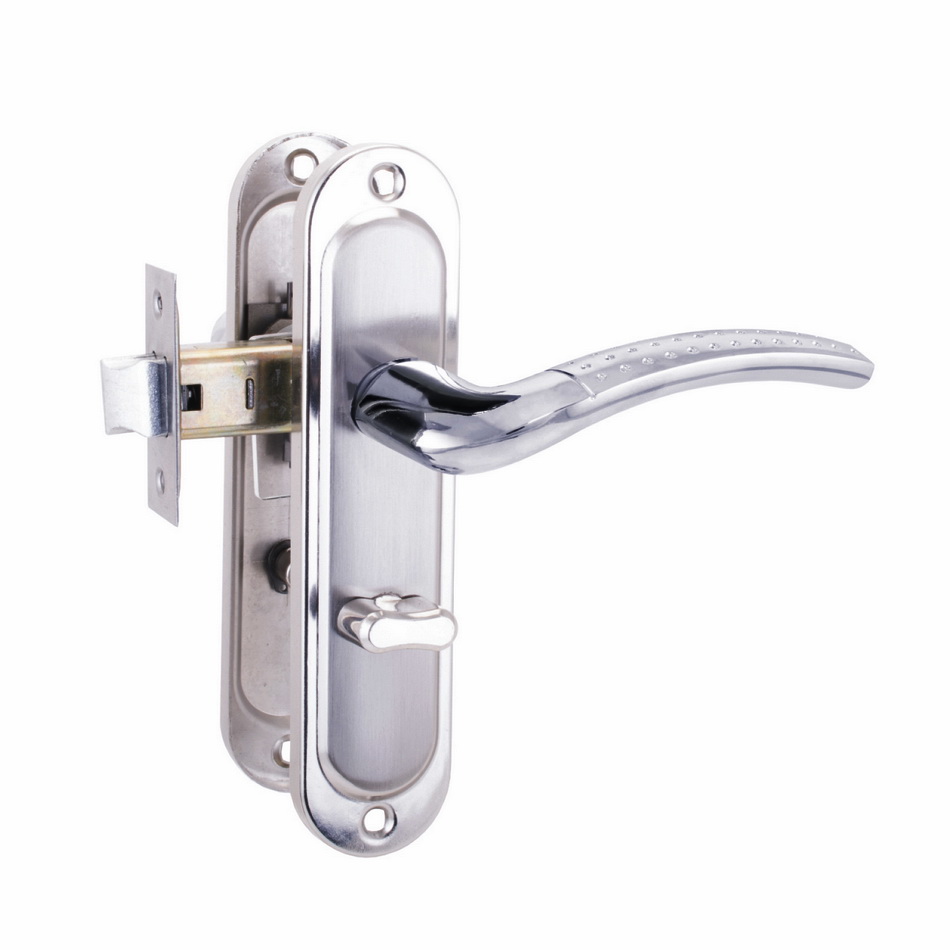 Защелка дверная с механизмом дополнительной фиксации. Предназначена для дверей сантех.узлов и прочих помещений, где необходима фиксация изнутри. Толщина дверного полотна: 31-42мм. Материалы: корпус - сталь, ручки - сталь, алюминиевый сплав с гальваническим покрытием. Корпус защелки - 62х21х17мм. Расстояние между осью отверстия под квадрат ручки и осью отверстия под поводок задвижки - 50мм. Взаимозаменяема по установочным отверстиям ручек с врезными замками Стандарт серии 103/50,132/50. Стандарт ЗЩД 132/50 R SN правая с фикс.