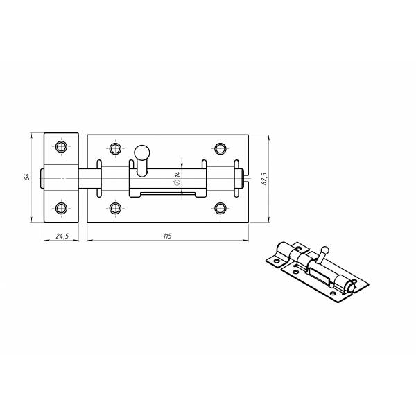 Задвижка дверная Металлист ЗД-01 без покрытия с круглым ригелем выполняет функцию дверной щеколды или шпингалета, предназначена для фиксации двери в закрытом положении Технические характеристики ЗД-01: модель накладная, круглый засов. Материал исполнения корпуса задвижки сталь; Размеры: Диаметр ригеля задвижки ЗД-01 - 15 мм. Толщина основания 1,5 мм; Длина засова 160 мм; Диаметр засова 14 мм; Габариты основания 64 х 115 мм. Накладная задвижка Металлист ЗД 01 используется для фиксирования в закрытом положении окон, дверей жилых и хозяйственных помещений; предназначена для установки как на металлические, так и на деревянные двери.