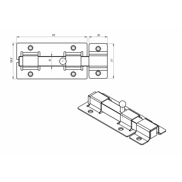 Задвижка дверная Металлист ЗД-06 с усиленным квадратным ригелем выполняет функцию дверной щеколды или шпингалета, предназначена для фиксации двери в закрытом положении Технические характеристики ЗД-06: модель накладная, усиленный квадратный засов. Материал исполнения корпуса задвижки сталь; Полимерное покрытие. Цвет покрытия полимерное, серебро. Размеры: Размер засова 16 х 16 мм; толщина плоского ригеля 4 мм, ширина 30 мм. Размер засова 30 х 4 мм; Толщина основания 1,5 мм; Длина засова 135 мм; Габариты основания 60 х 115 мм. Накладная задвижка Металлист ЗД 06 используется для фиксирования в закрытом положении окон, дверей жилых и хозяйственных помещений; предназначена для установки как на металлические, так и на деревянные двери.