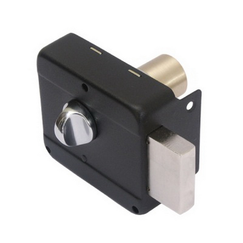 Замок накладной цилиндровый с вертушкой. Предназначен для установки на деревянные двери. Засов прямоугольного сечения с максимальным вылетом 22 мм. Удаление ключевого отверстия - 50 мм. Габариты замка - 86х77х25 мм. Комплектация - 6 ключей, запорная планка, накладка. Механизм замка под англ.ключ, идет совместно с корпусом. Закрывание и открывание замка изнутри производится вертушкой, снаружи ключом..