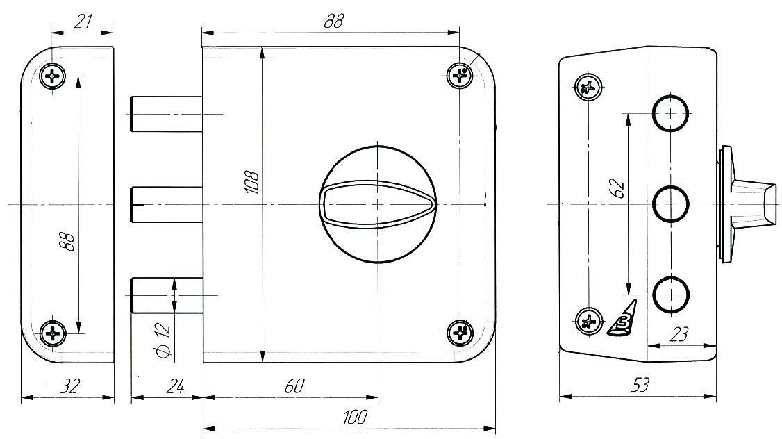 Замок имеет популярные посадочные размеры. Рекомендован для установки в деревянные и металлические двери. Оснащен тремя стальными ригелями. Цилиндровый механизм обеспечивает повышенную секретность. Соответствует 2 классу безопасности по ГОСТ 5089-2011.