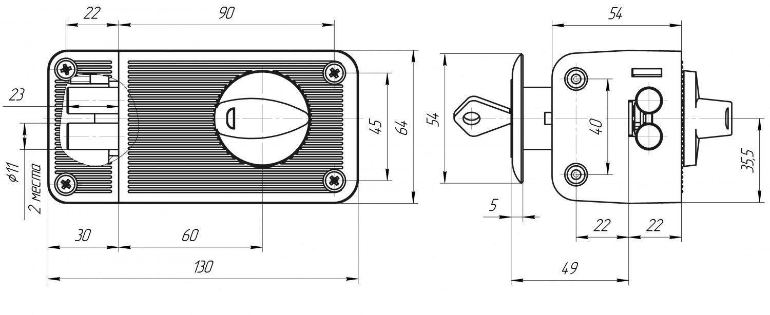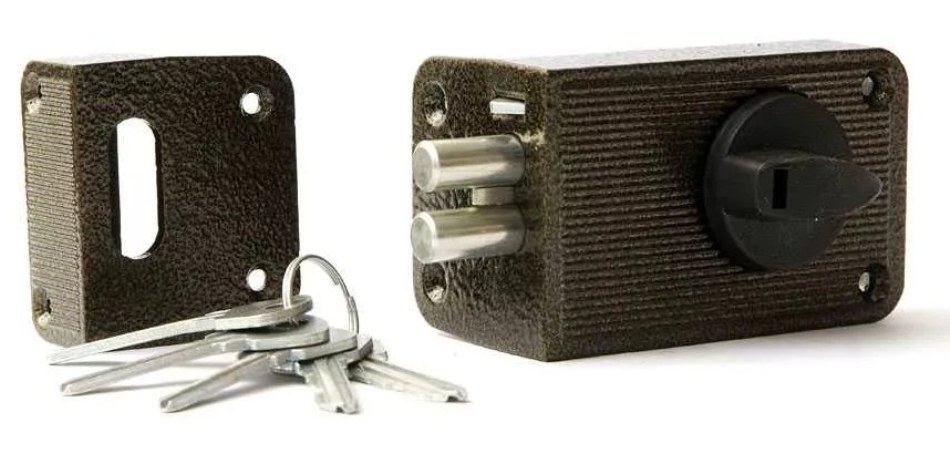 Замок оснащен функцией автоматического запирания и блокировки засова в закрытом положении.