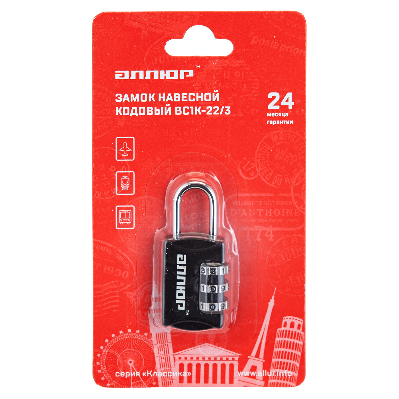 Замок кодовый. Предназначен для защиты от несанкционированного вскрытия сумок, чемоданов и др. багажа. Замок запирается дужкой диаметром 3 мм. Габариты замка - 55х22х10 мм. Диапазон цифр в каждом значении - от 0 до 9. Материал корпуса - цинковый сплав, дужки -сталь