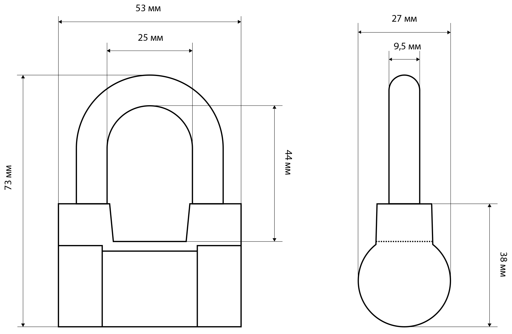 Замок навесной дисковый общего применения. Материал корпуса - алюминиевый сплав. Стальная дужка диаметром 9 мм; проем дужки - 31 мм по высоте и 26 мм по ширине. Габариты корпуса - 53х33 мм.Комплектуется 3 ключами. Ключевое отверстие расположено сбоку замка.