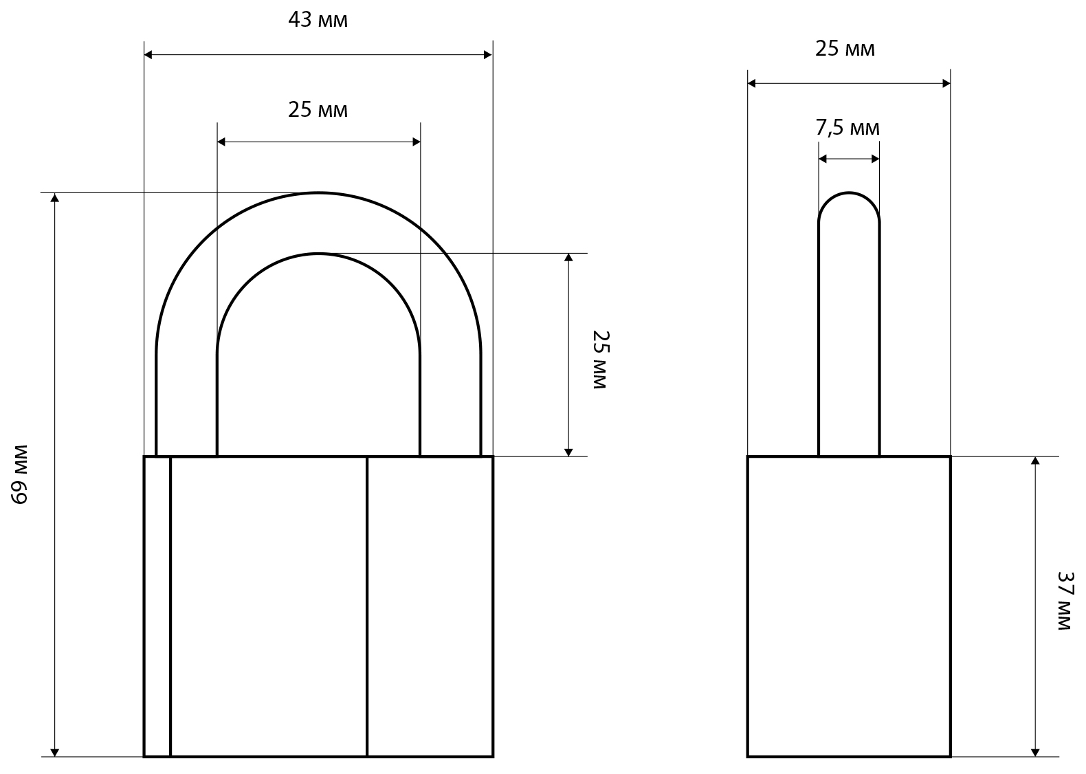 Замок навесной дисковый общего применения. Материал корпуса - алюминиевый сплав. Стальная дужка диаметром 7,5 мм; проем дужки - 25 мм по высоте и 25 мм по ширине. Габариты корпуса - 43х37 мм. Комплектуется 3 ключами.