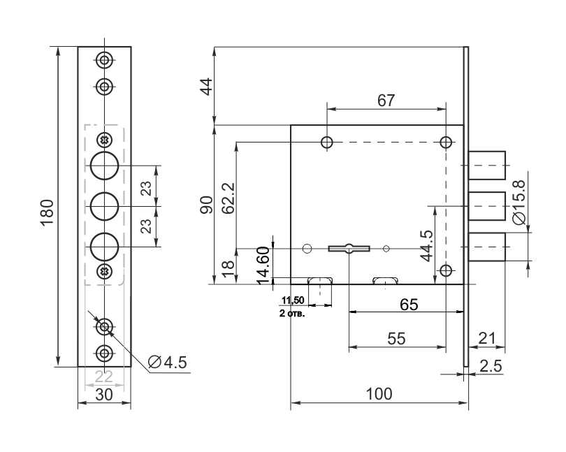 Замок врезной Птимаш ЗВ9 Классика бронза