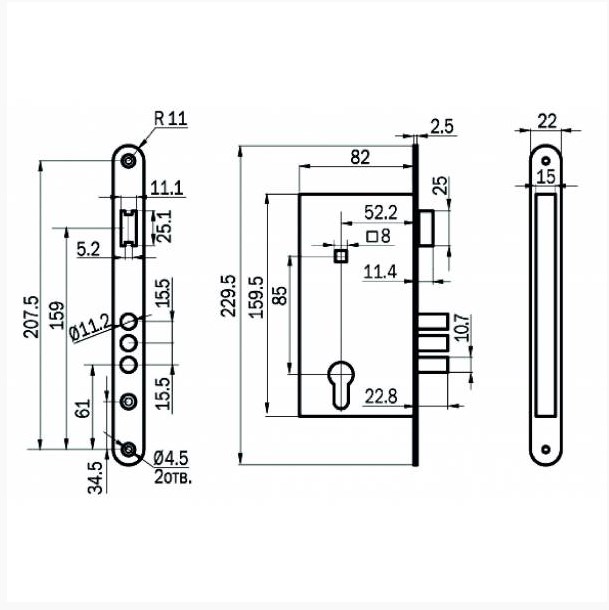 Замок врезной цилиндровый 78110 ЗВ4-3/СП11.РФ7-022.60-3.Ш2 в комплекте с защелкой и фалевыми ручками. ЗВ 78110 предназначен для входных и внутренних дверей толщиной 40-50 мм жилых домов, квартир, торговых и конторских помещений. Замок ЗВ 78110 универсальный, его можно устанавливать как в правые, так и в левые двери, переустановив защелку. Межцентровое расстояние 85 мм. Дверь может быть закрыта на защелку и открыта с помощью фалевой ручки при открытом засове замка. ЗВ 78110 комплектуется 3/5 стальными ключами. Изготавливается с засовом из трех стальных стержней круглого сечения. Покрытие корпуса дверного замка ЗВ 78110 цинковое. Покрытие лицевой и ответной планок никелевое. Фурнитура для дверного замка ЗВ 78110 : РФ 58: цилиндровый; межцентровое расстояние 85 мм; вылет ригелей 22 мм; диаметр ригеля 10,7 мм; габаритные размеры ЗВ 78110 - 160х82х15. Модель ЗВ 78110 4-3/СП11.РФ58-022.60-ZN.Ш2. Накладки с фалевыми ручками, покрытие "черный жемчуг". Цилиндровый механизм 60 мм. Длина ключа / количество - 56/6. Количество в транспаковке упаковке / вес (кг) - 9/13,05.