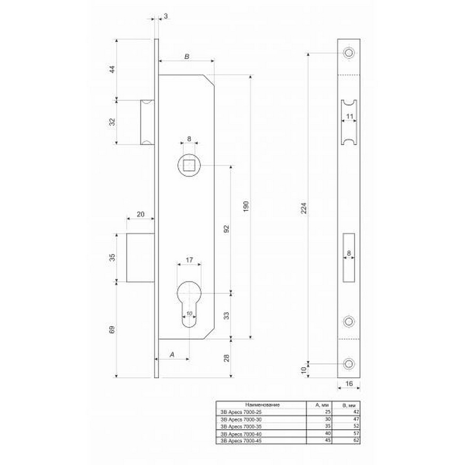 Замок врезной 7000-45-NI