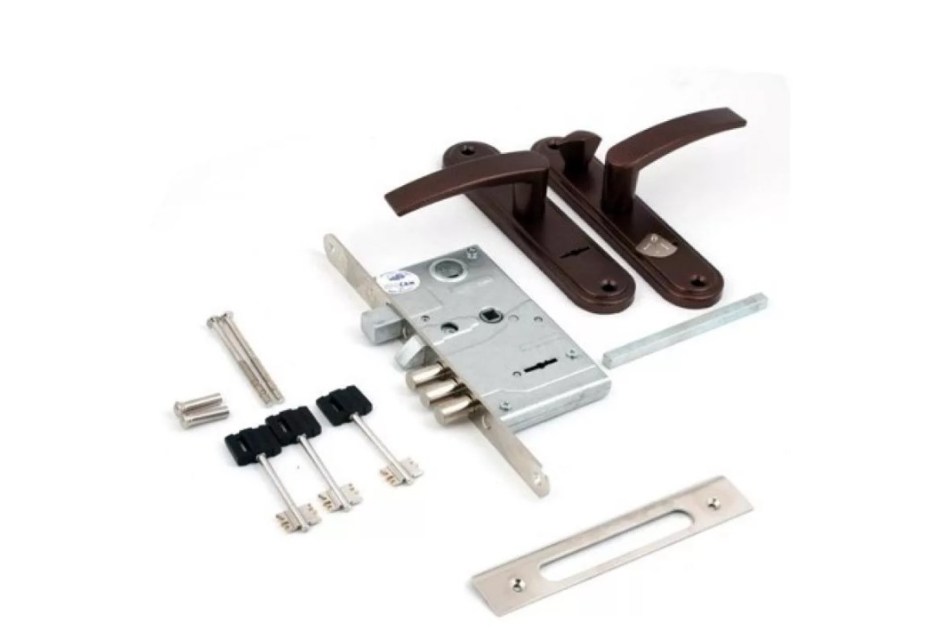 Замок Врезной ПроСам ЗВ9-8 ручки, сувальдный/13(КПП2-88)ЗП.РФ46Л-002Ш.УЗ. Замок врезной 8-сувальдный с защелкой, задвижкой и фалевыми ручками. Предназначен для установки в двери толщиной 40-50 мм. Выпускается отдельно на правые и на левые двери. Комплектуется 3 стальными ключами. Замок дверной открывается и закрывается изнутри и снаружи ключом. Дверь может быть закрыта на защелку и открыта с помощью фалевой ручки при открытом сувальдном механизме. С внутренней стороны дверной замок может закрываться на задвижку. Покрытие корпуса замка - цинк. Покрытие лицевой и ответной планки - никель. Замок дверной имеет защиту от высверливания. Изготовлен из высокопрочных материалов. Имеет защитное покрытие. Модель ЗВ 9-8.3/13 ЗП.РФ46Л-002.Ш. Накладки с фалевыми ручками "медный антик". Длина ключа/кол- во - 70/3. Количество в транспортной упаковке/вес(кг) - 9/14,47.