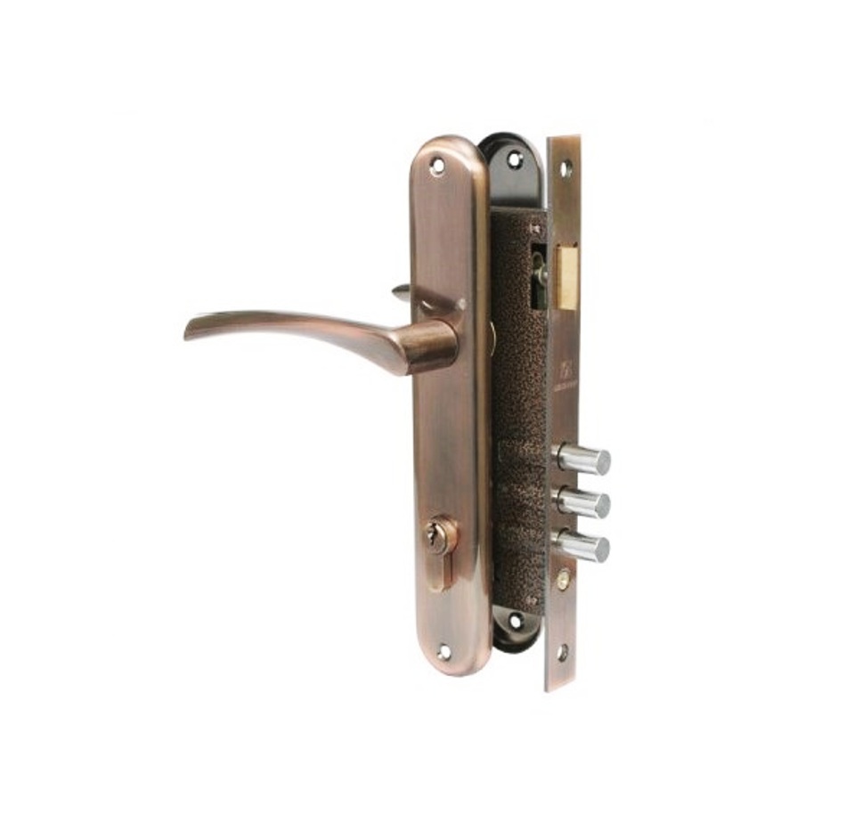 Серия "Классика". Замок врезной с ручками. Предназначен для установки в деревянные двери толщиной до 40мм, правого и левого открывания. Дверь может быть закрыта на защелку и открыта с помощью фалевой ручки при открытом засове замка. Три стальных ригеля круглого сечения диаметром 12мм, вылет 20мм. Универсальная защелка. Стальной корпус с подшипником, покрыт полимерной краской. Межосевое расстояние 85 мм. Удаление ключевого отверстия 45мм. Материал ручек алюминиевый сплав. Комплектация: цилиндровый механизм 68мм, 6 ключей, ответная планка, винтовые стяжки.