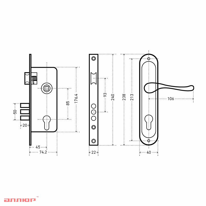 Замок врезной Аллюр 0203 СР