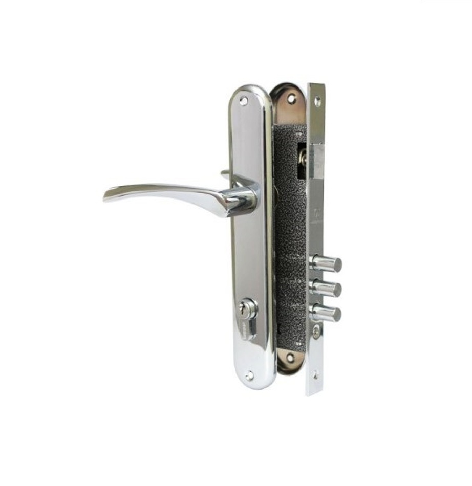 Серия "Классика". Замок врезной с ручками. Предназначен для установки в деревянные двери толщиной до 40мм, правого и левого открывания. Дверь может быть закрыта на защелку и открыта с помощью фалевой ручки при открытом засове замка. Три стальных ригеля круглого сечения диаметром 12мм, вылет 20мм. Универсальная защелка. Стальной корпус с подшипником, покрыт полимерной краской. Межосевое расстояние 85 мм. Удаление ключевого отверстия 45мм. Материал ручек алюминиевый сплав. Комплектация: цилиндровый механизм 68мм, 6 ключей, ответная планка, винтовые стяжки.