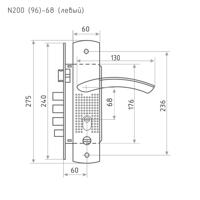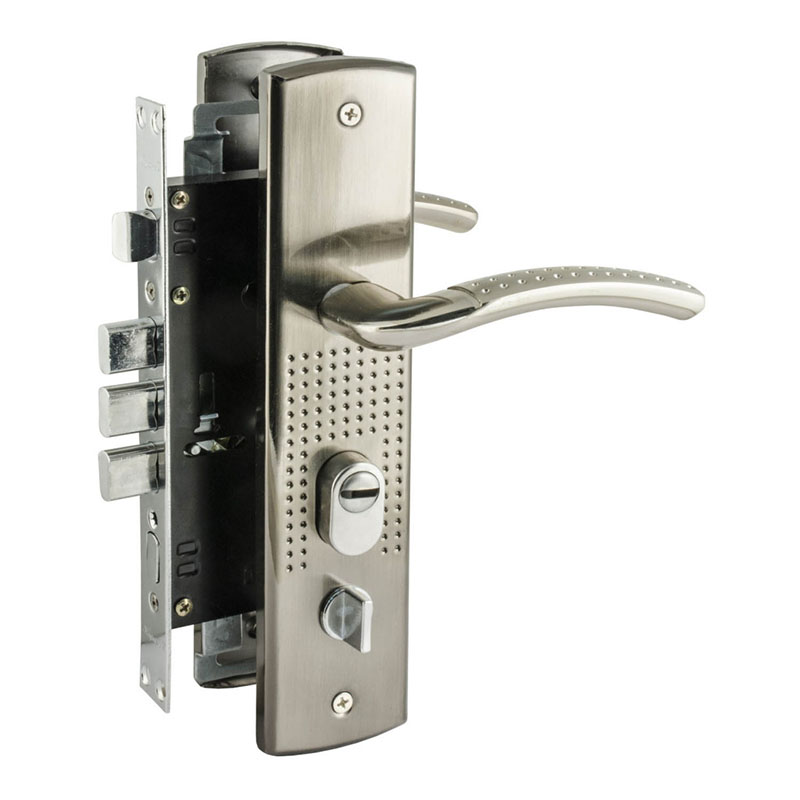 Комплект врезного замка для дверей китайского производства с открыванием на левую сторону. Стальной корпус оснащён ригелями из закалённой стали. Алюминиевые полноразмерные ручки расположены на стальных планках. Гальваническое покрытие наружных элементов обеспечивает защиту от механических повреждений и коррозии. Стандартное межосевое расстояние – 68 мм – позволяет монтировать замок на новые двери или использовать его для замены сломанного устройства в китайских полотнах. Бэксет 60 мм. Цилиндр в комплект поставки не входит и приобретается отдельно, исходя из параметров дверного полотна. Гарантийный срок работы составляет 5 лет.