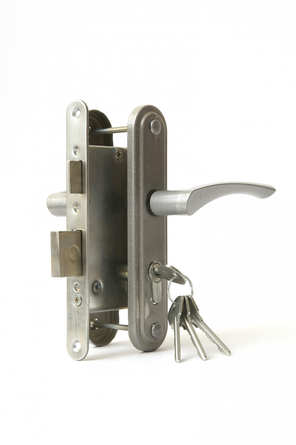 Замок врезной с ручками, цилиндровый. Предназначен для установки в деревянные двери толщиной 40-50мм, правого и левого открывания. Стальной оцинкованный корпус. Прямоугольный ригель из цинкового сплава, вылет 22мм. Межосевое расстояние 55мм. Удаление ключевого отверстия 55мм. Габаритный размер 85х130 мм. Ручки - сталь, алюминиевый сплав, покрытие - краска, крепление - стяжками. Комплектуется цилиндровым механизмом 70мм с 4 ключами. 15000 секретных комбинаций.