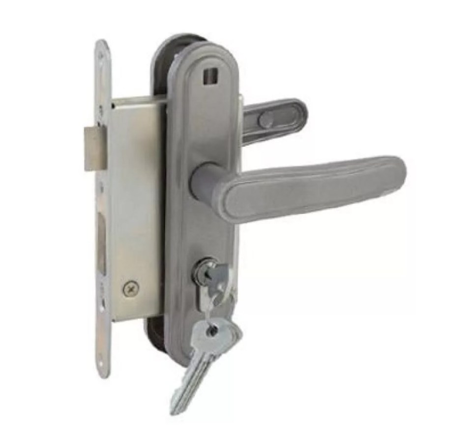 Замок врезной с подпружиненными ручками, цилиндровый. Предназначен для установки в деревянные двери толщиной 40-50мм, правого и левого открывания. Стальной оцинкованный корпус. Прямоугольный ригель из цинкового сплава, вылет 22мм. Межосевое расстояние 55мм. Удаление ключевого отверстия 55мм. Габаритный размер 85х130 мм. Ручки - сталь, алюминиевый сплав, покрытие - краска, крепление - стяжками. Комплектуется цилиндровым механизмом 70мм с 4 ключами. 15000 секретных комбинаций.