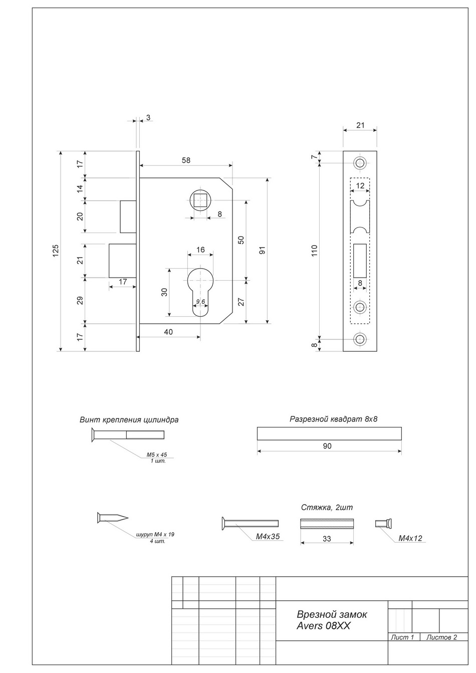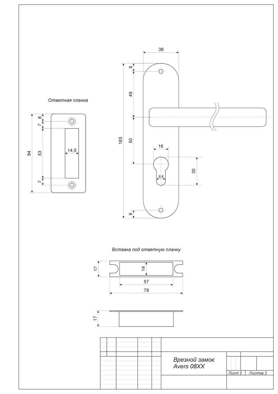 Замок врезной с ручками. Предназначен для установки в деревянные двери толщиной до 40мм, правого и левого открывания. Дверь может быть закрыта на защелку и открыта с помощью фалевой ручки при открытом засове замка. Прямоугольный ригель, вылет 16мм. Универсальная защелка. Стальной корпус, покрытие эмаль. Межосевое расстояние 50мм. Удаление ключевого отверстия 40мм. Гальваническое покрытие ручек, материал алюминий. Механизм секрета с уменьшеной высотой профиля, длина ц/м 68 мм, ключ-вертушка, 5 ключей.