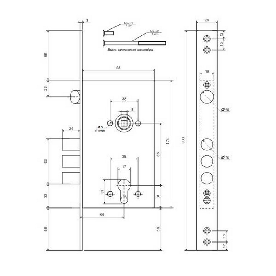 Тип упаковки Коробка Назначение Общее Рекомендован для установки в входные двери Да Рекомендован для установки в межкомнатные двери Нет Тип крепления Лицевая планка Тип ригелей Цилиндрические Количество ригелей 3 Вылет ригелей 24 мм Диаметр ригеля 16 мм Удаление ключевого отверстия (Backset) 60 мм Тип механизма секретности Цилиндровый Тип цилиндрового механизма Евроцилиндр Комплектация цилиндром Не комплектуется Дополнительный механизм секретности Нет
