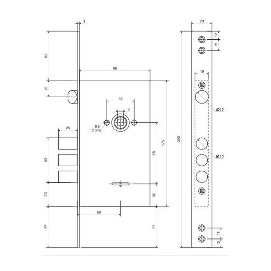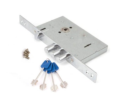 ТЗамок врезной APECS PREMIER T-52/S8-CR сувальдный с двойной бородкой для металлических дверей соответствует 4 классу безопасности, сертифицирован по ГОСТ. Технические характеристики ЗВ T-52/S8-CR Апекс: трехригельный сувальдный замок с защелкой рекомендован для установки во входные двери; Крепление к дверному полотну лицевой планкой; Тип ригелей цилиндрические; Количество ригелей 3; Вылет ригелей 26 мм; Диаметр ригеля 16 мм; Удаление ключевого отверстия (Backset) 60 мм; Тип механизма секретности сувальдный с двойной бородкой; Количество ключей в комплекте 4 шт; Межосевое расстояние 85 мм; удаление ключевого отверстия 60 мм; Комплектация: корпус замка, ручками и цилиндром комплектуется отдельно; Неавтоматическое запирание; Количество точек запирания 1; Покрытие лицевой планки гальваническое; Цвет лицевой планки хром; Количество сувальд 8; Защита от сворачивания; Защита от отмычек; Защита от высверливания. Замок врезной Апекс PREMIER T-52 является аналогом сувальдного КЗВ V25/S-60.85.3R16 4 ключа Fuaro