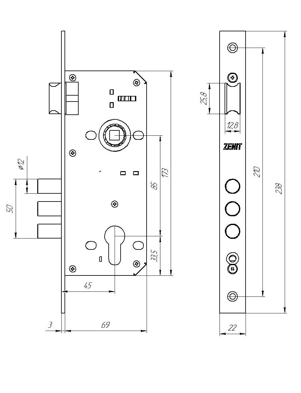 Замок врезной цилиндровый Зенит ЗВ4-85.