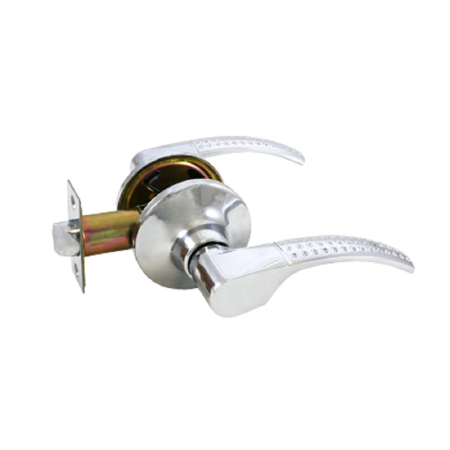 Ручка-защелка фалевая, нажимная для межкомнатных дверей . Материал ручек - алюминиевый сплав, накладок- сталь. Гальваническое покрытие. Предназначена для дверей толщиной до 40 мм. Регулируемое расстояние от края двери до оси ручек 60-70 мм. Скругленная защелка размерами 14х19 мм с вылетом 12 мм. Габариты корпуса врезной защелки 85х23х20 мм.