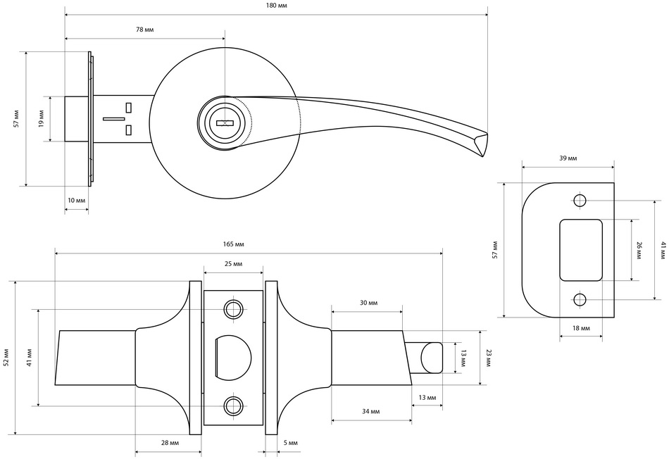 Ручка-защелка фалевая, нажимная для межкомнатных дверей . Материал ручек - алюминиевый сплав, накладок- сталь. Гальваническое покрытие. Предназначена для дверей толщиной до 40 мм. Регулируемое расстояние от края двери до оси ручек 60-70 мм. Скругленная защелка размерами 14х19 мм с вылетом 12 мм. Габариты корпуса врезной защелки 85х23х20 мм.