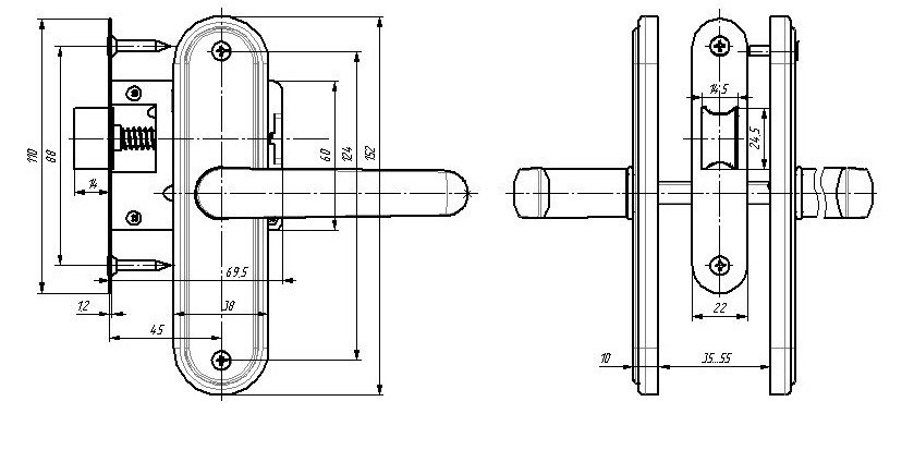 Замок врезной Птимаш ЗВ9 Классика бронза