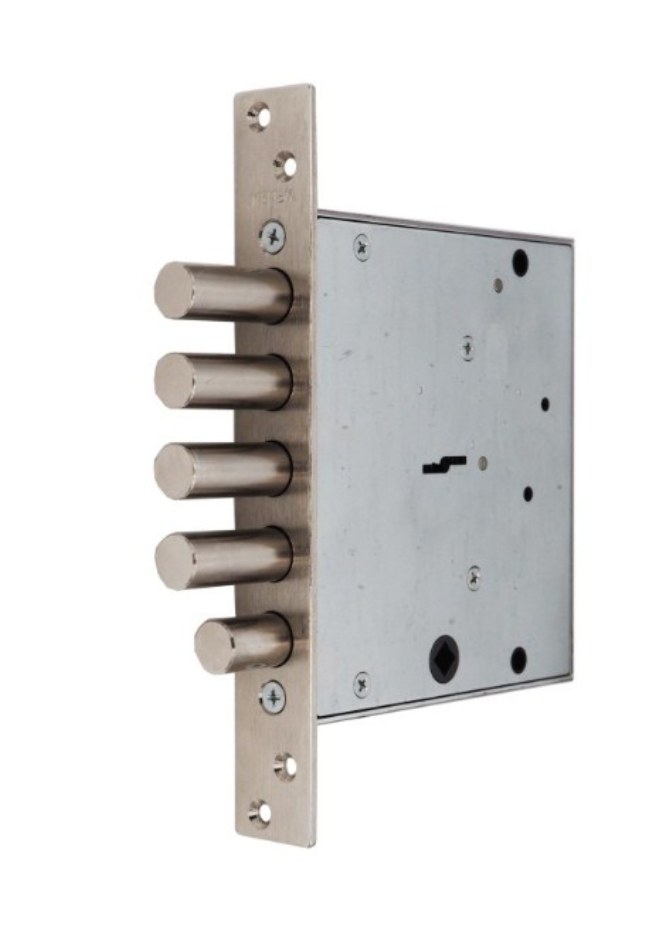Замок запирает дверь четырьмя стальными ригелями и задвижкой. Диаметр ригелей засова и задвижки — 16 мм. Ригели выдвигаются из корпуса замка на 40 мм и 24 мм соответственно. В одном из ригелей расположен закалённый стальной стержень, обеспечивающий надёжную защиту от перепиливания. При помощи данного замка дверь запирается на четыре полных оборота (возможно неполное запирание двери на два оборота), а также дополнительно изнутри — на задвижку.